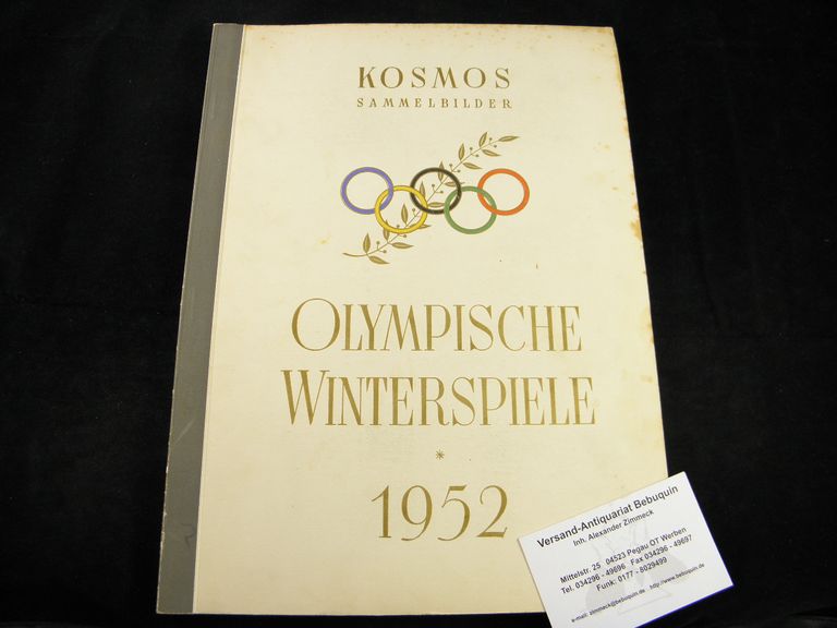 SAMMELBILDERALBEN.– KOSMOS ZIGARETTENBILDER.– Olympische Winterspiele 1952. Bilder vom Spielgeschehen 1951 bis zur Deutschen Meisterschaft 1952. 2. Teil. Memmingen, 1952. 4°. mit 150 Sammelbildern. ill. OKart. Einband gering fleckig, gutes Ex.