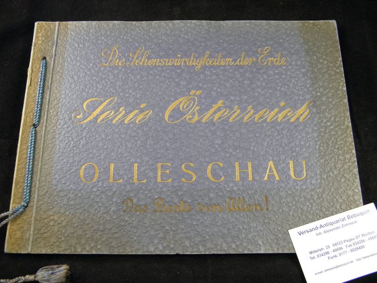 SAMMELBILDERALBEN.– OLLESCHAU.– Serie Österreich. Die Sehenswürdigkeiten der Erde. Wien, 1930. Quer 4°. mit 100 farb. Sammelbildern. OKart. mit Kordelbindung. Rücken gering berieben.