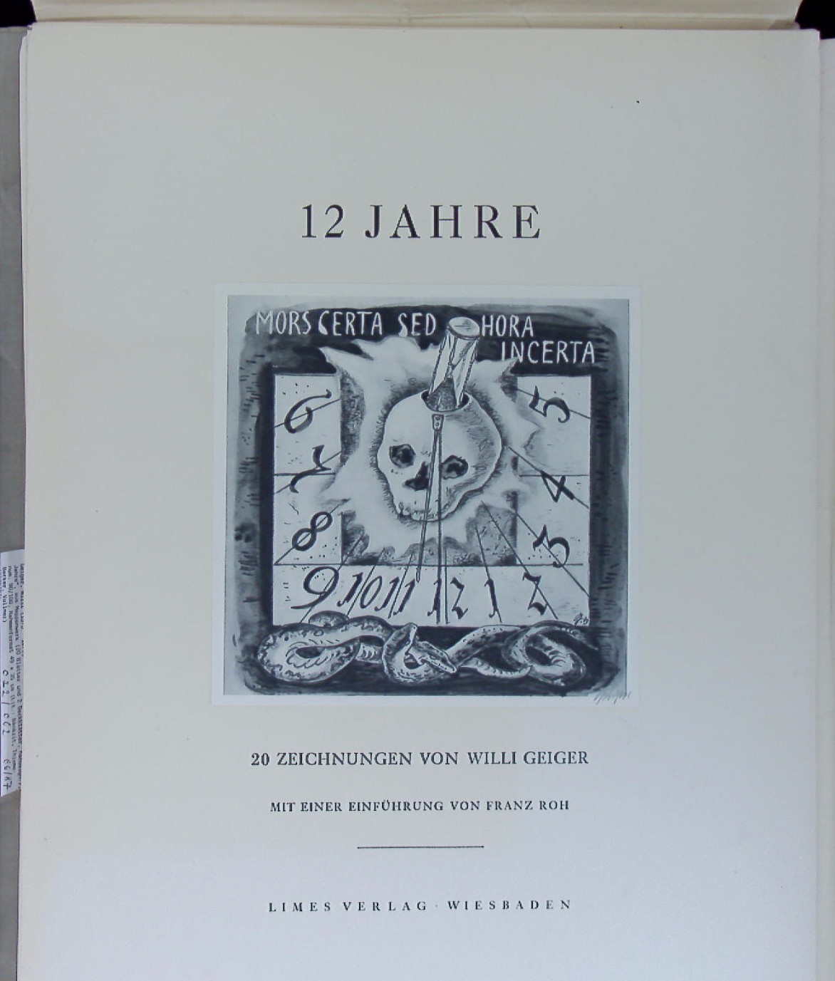 GEIGER.– ROH, Franz: 12 Jahre. 20 Zeichnungen. Wiesbaden (Limes), 1948. Fol. 6 S. 20 Taf. mit mont. signierten Frontispiz. OHLn mit signiertem mont. Deckelbild. Mappe leicht eckfaltig, die Tafeln gut mit den zwei. Hier die Nr. 90 der nummerierten Vorzugsausgabe. Die Tafeln alle am unteren Rand mit Bleistift betitelt und in der Abbildung mit Bleistift monogrammiert.