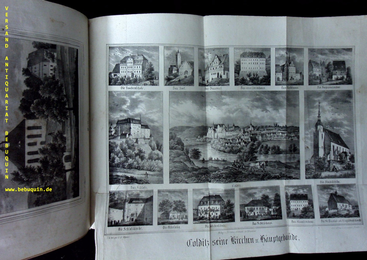 SACHSEN.– SACHSENS KIRCHEN – GALERIE (Kirchengalerie).– Zehnter Band. Die Inspectionen: Penig, Rochlitz, Colditz und Waldheim. 48 Lieferungen (alles) in 1 Band. Dresden (Schmidt), 1843. IV, 224 S. mit 71 (statt wohl 72) lithographischen Tafeln mit insgesamt 92 Ansichten sowie 4 (statt 5) mehrfach gefalteten lithographischen Prämienblättern. Moderner brauner Leinenband mit Deckeltitel. Mitunter gebräunt und durchgängig unterschiedlich fleckig. 2 Falttafeln geklebt. Bemmann-Jatzwauk I/2, 385. – Von dem gesuchten Ansichtenwerk erschienen insgesamt zwölf Bände sowie ein Sonderband zur Oberlausitz. – Der hier vorliegende zehnte Band der Reihe behandelt sehr zahlreiche Ortschaften der weiteren