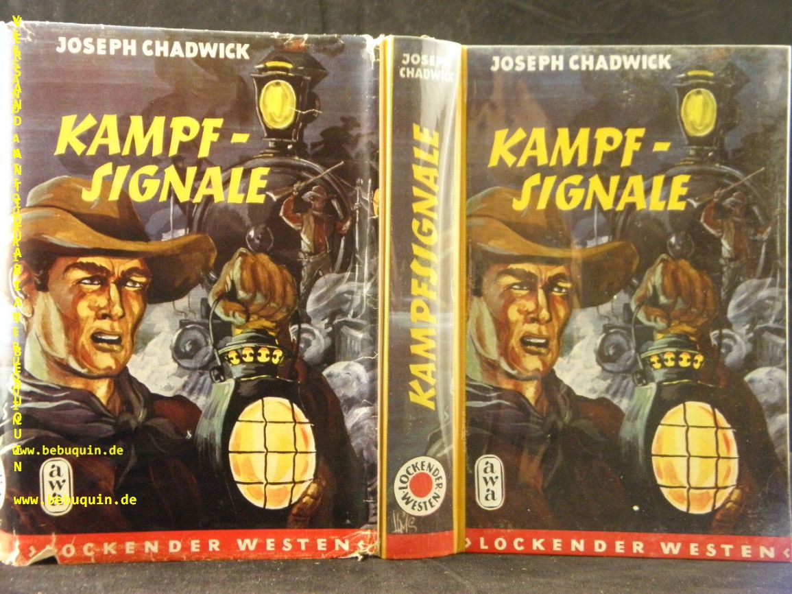 CHADWICK, Joseph: Kampfsignale. D.v. Hansheinz Werner. München (AWA), ca 1955. 336 (4) S. farb. ill. OHLn mit OUmschl. Umschlag leicht lädiert. = Lockender Westen. dt. EA.