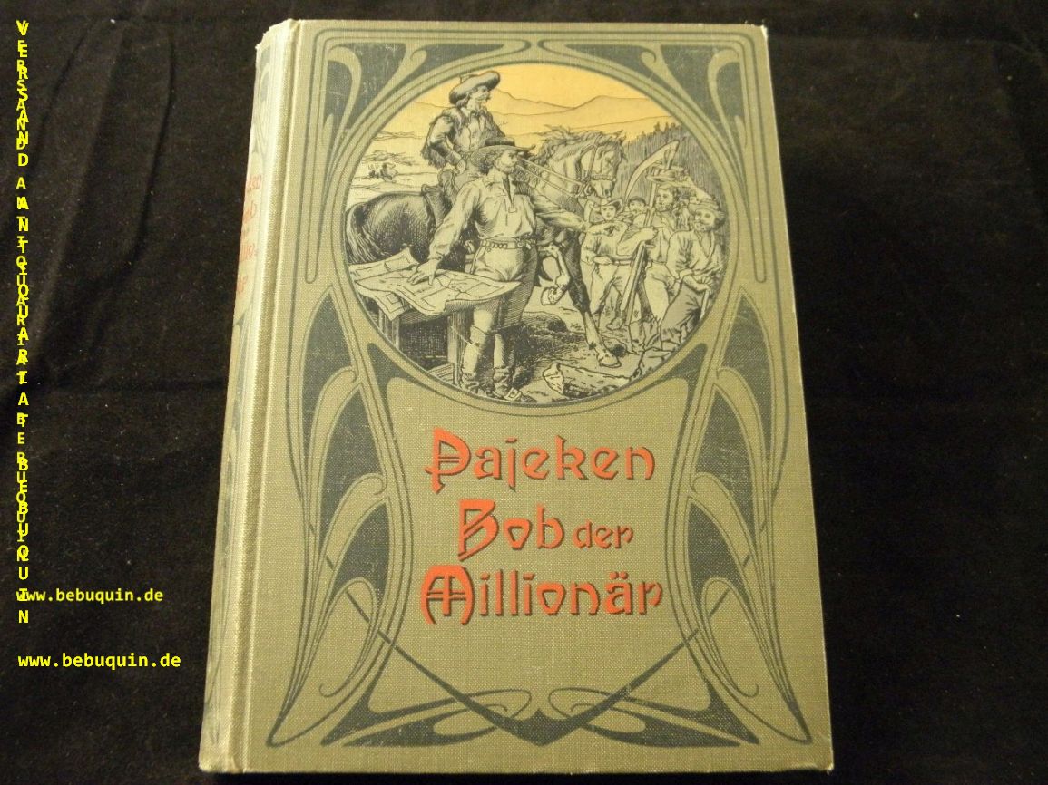 PAJEKEN, Friedrich J.: Bob der Millionär. Eine Erzählung aus dem Westen Nordamerikas. 5. Aufl. Leipzig (Hirt), (1908). 191 S. mit Abb. nach Zeichnungen von Johannes Gehrts und einem 16seitigen Werbeanhang. ill. OLn. feines Ex. Klotz 5284/5.
