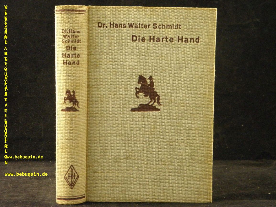 SCHMIDT, Hans Walter: Die Harte Hand. Bremen (Burmester), ca 1938. 239 (1) S. ill. OLn. etwas gebräunt, NaV. = Burmester’s Abenteuer-Serie. EA.