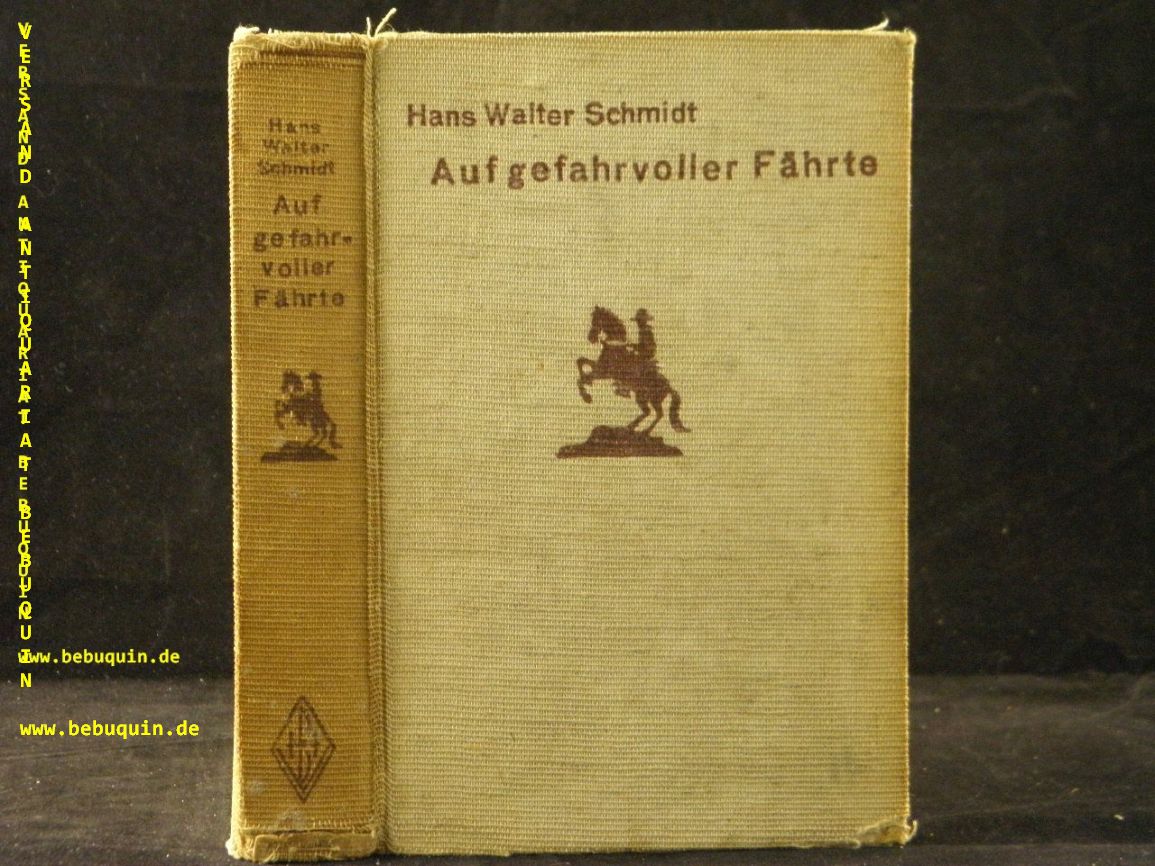 SCHMIDT, Hans Walter: Auf gefahrvoller Fährte. Bremen (Burmester), ca 1938. 256 S. ill. OLn. Einband angeschmutzt, NaV, hinterer Vorsatz fehlt. = Burmester’s Abenteuer-Serie. EA.