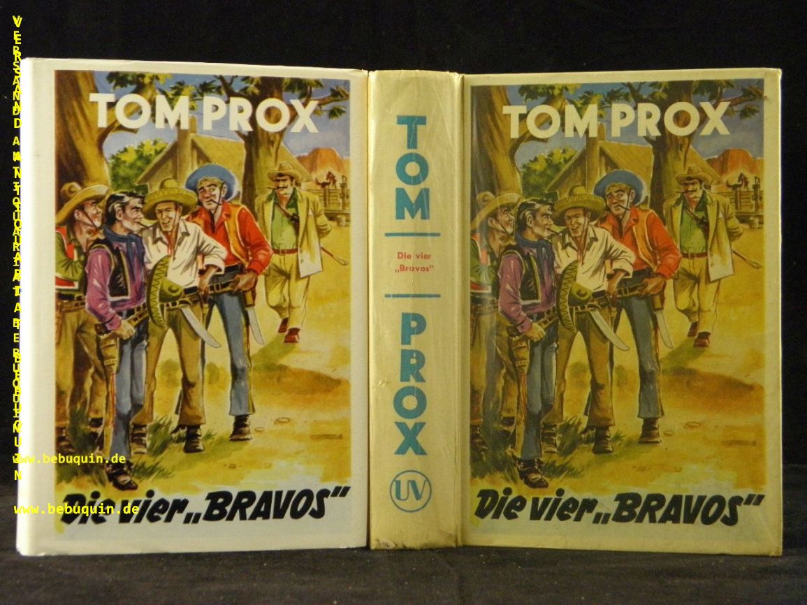 TOM PROX.– KENNETH, Gordon: Die vier ‚Bravos‘. Sinzig (Uta), 1954. 254 (2) S. farb. ill. OPb. mit OUmschl. gestempeltes Leihbuch, leicht angeschmutzt. = Tom Prox abenteuerliche Erlebnisse, Bd. 66. 1. Aufl. dieser Ausgabe.