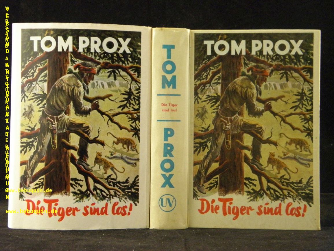 TOM PROX.– REUTER, Joe: Die Tiger sind los! Sinzig (Uta), 1956. 256 S. farb. ill. OPb. mit OUmschl. gestempeltes Leihbuch. = Tom Prox abenteuerliche Erlebnisse, Bd. 109. 1. Aufl. dieser Ausgabe.