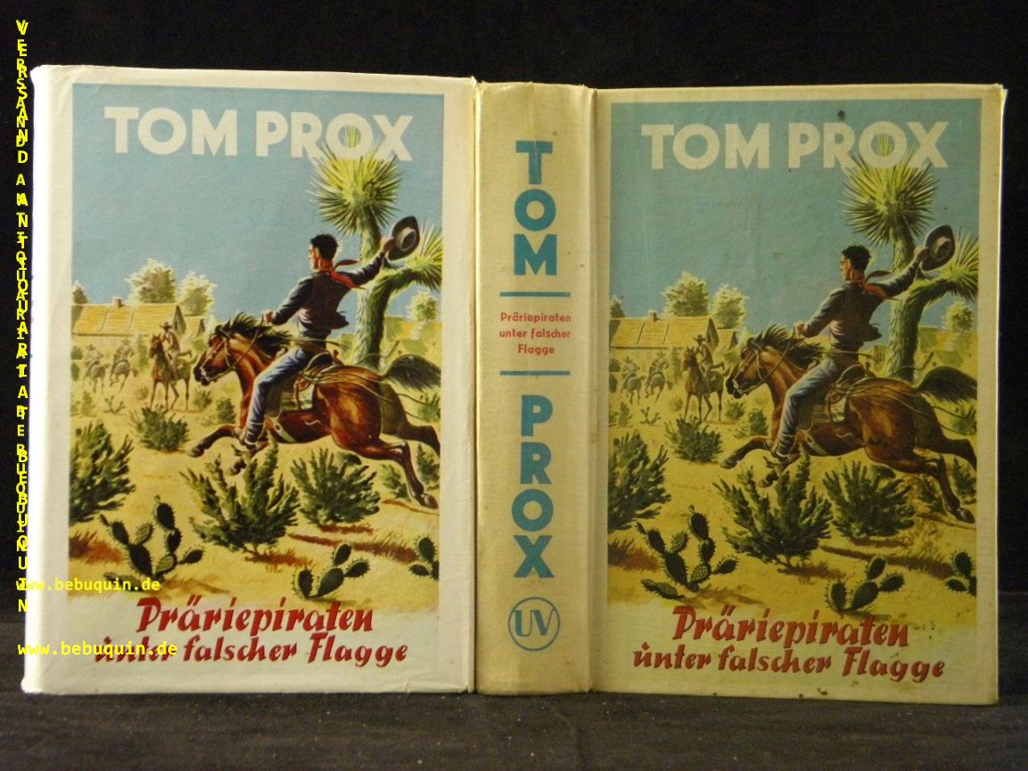 TOM PROX.– LEE, Frank: Präriepiraten unter falscher Flagge. Sinzig (Uta), 1955. 255 S. farb. ill. OPb. mit OUmschl. gestempeltes Leihbuch, Umschlag gering lädiert. = Tom Prox abenteuerliche Erlebnisse, Bd. 107. 1. Aufl. dieser Ausgabe.