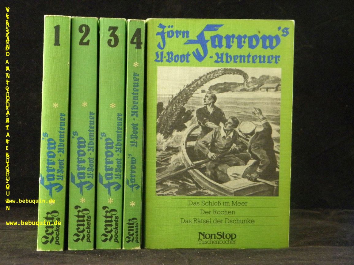 JÖRN FARROW.– WARREN, Hans: Jörn Farow’s U-Boot-Abenteuer. 5 Bände. München (Lentz), 1978-80. ca 800 S. ill. OKart. tadellos. Bd. 5 aus dem Non Stop Taschenbuch Verlag in gleicher Aufmachung.