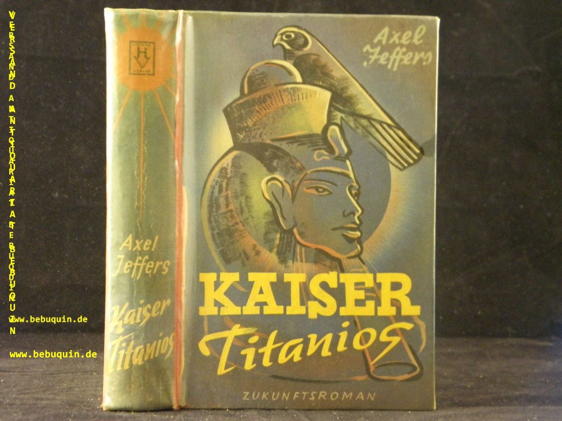JEFFERS, Axel: Kaiser Titanios. Zukunftsroman. Balve (Hönne), 1953. 256 S. farb. ill. OPb. gestempeltes Leihbuch. EA.