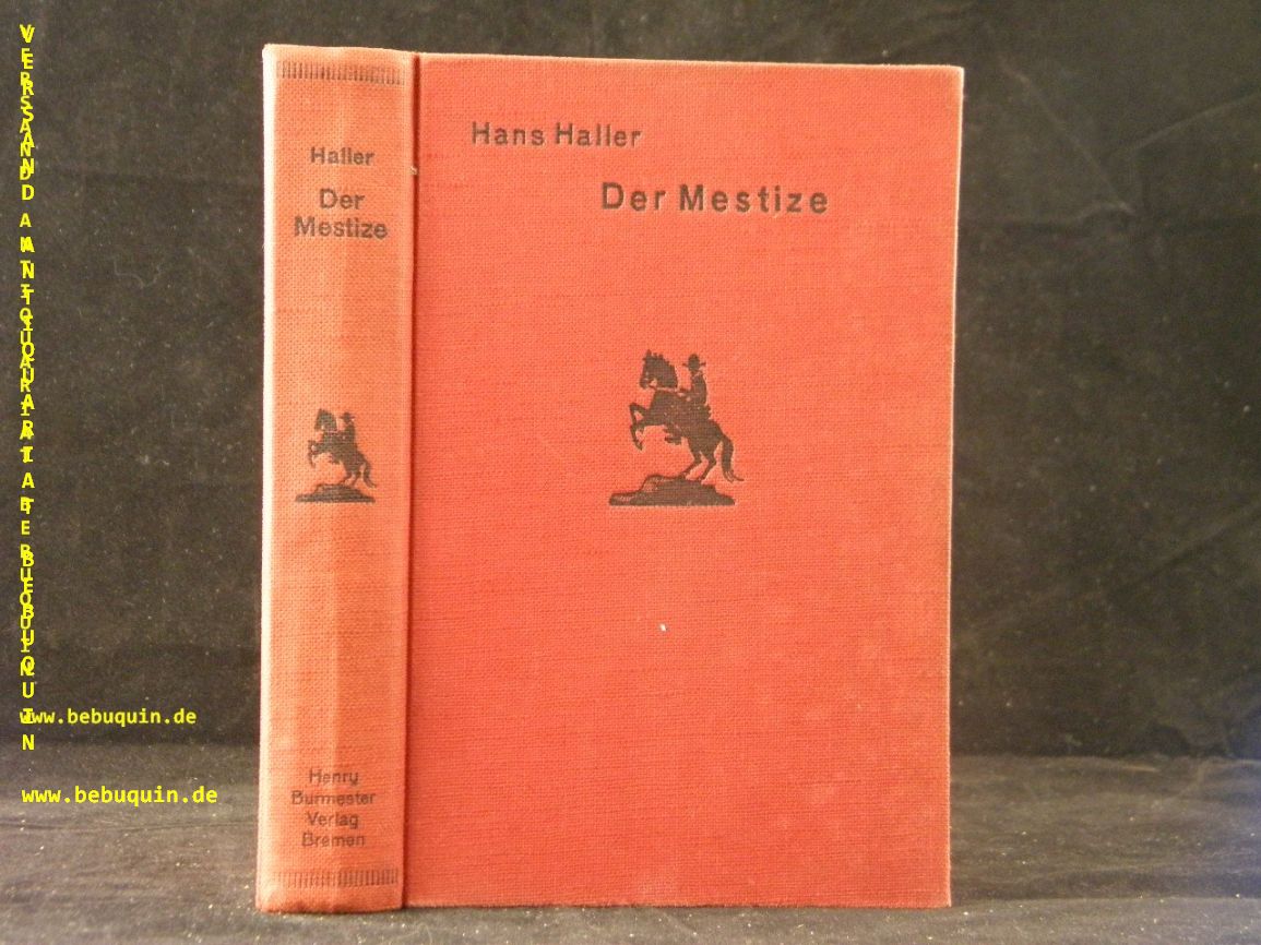 HALLER, Hans: Der Mestize. Bremen (Burmester), (1933). 256 S. ill. rotes OLn. gutes Ex. = Burmester’s Abenteuer – Serie. EA. Schegk / Wimmer S1.