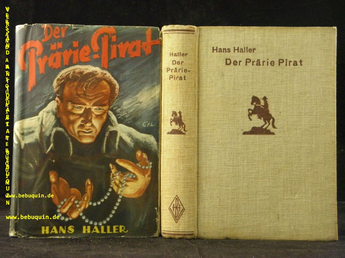 HALLER, Hans: Der Prärie-Pirat. Bremen (Burmester), (1936). 256 S. ill. OLn. mit OUmschl. Umschlag an den Kanten hinterlegt, insgesamt gering bestaubt, gutes Ex. = Burmester’s Abenteuer – Serie. EA. Schegk / Wimmer S2.