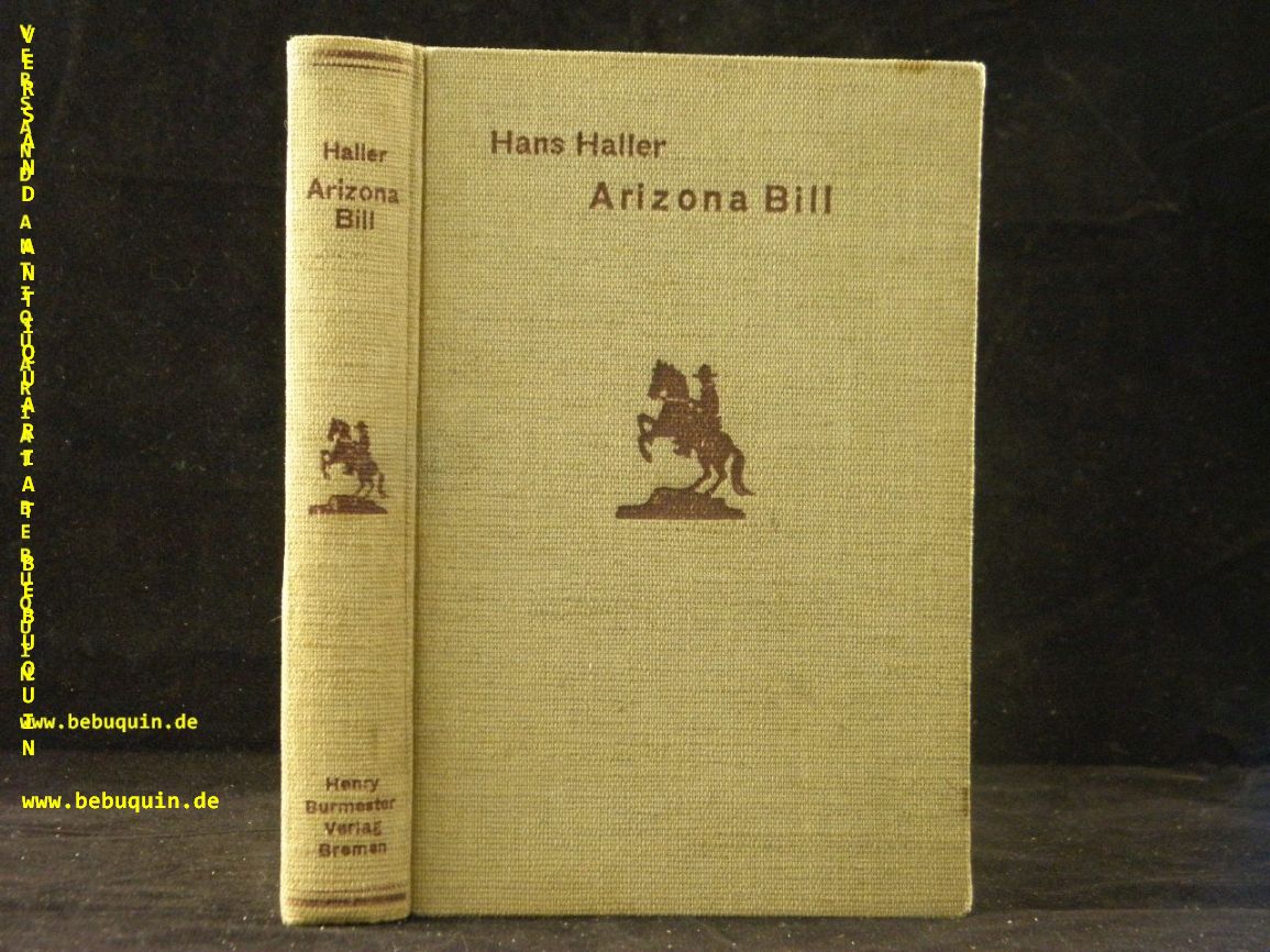 HALLER, Hans: Arizona Bill. Bremen (Burmester), (1933). 288 (4) S. brauner ill. OLn. vorderes Gelenk gelockert. = Burmester’s Abenteuer – Serie. EA. Schegk / Wimmer S1. Umschlagfragment anbei.