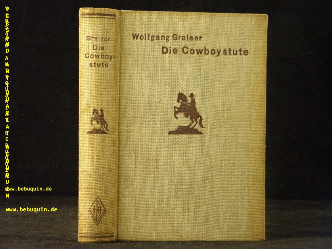 GREISER, Wolfgang: Die Cowboystute. Bremen (Burmester), ca 1938. 256 S. ill. OLn. Rücken etwas gebräunt, NaV.. = Burmester’s Abenteuer – Serie. seltene EA.