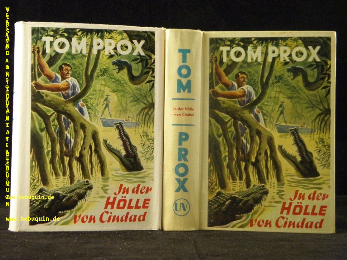 TOM PROX.– DALTON, Frank: In der Hölle von Cindad. Sinzig (Uta), 1956. 256 S. farb. ill. OPb. mit OUmschl. gestempeltes Leihbuch. = Tom Prox abenteuerliche Erlebnisse, Bd. 110. 1. Aufl. dieser Ausgabe.