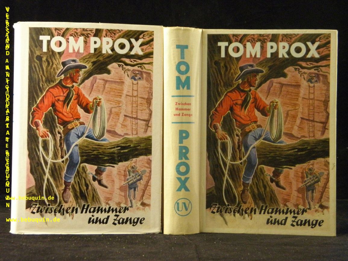 TOM PROX.– ROBBY, Alex: Zwischen Hammer und Zange. Sinzig (Uta), 1956. 256 S. farb. ill. OPb. mit OUmschl. gestempeltes Leihbuch. = Tom Prox abenteuerliche Erlebnisse, Bd. 114. 1. Aufl. dieser Ausgabe.