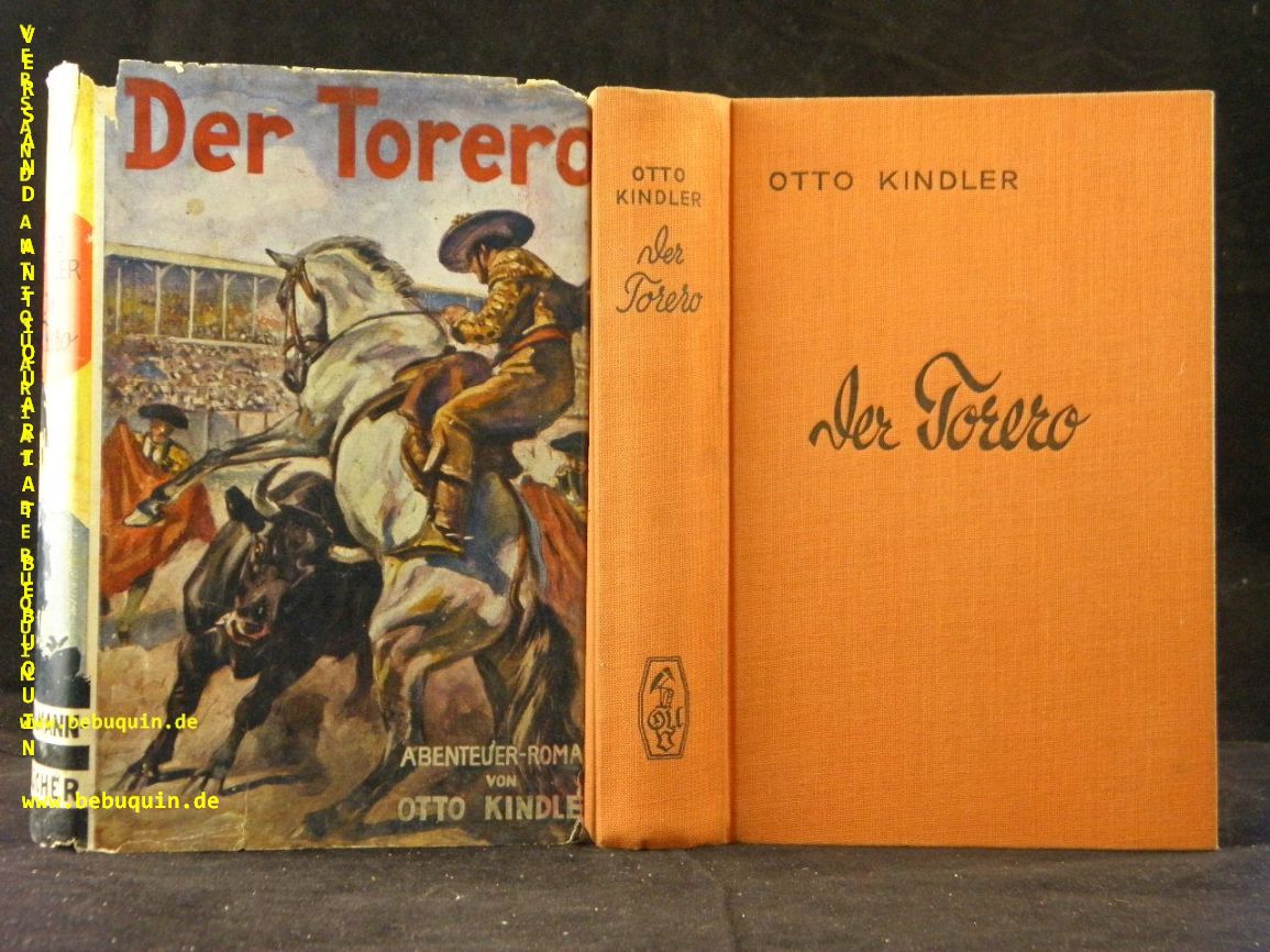 KINDLER, Otto: Der Torero. Abenteuerroman. Berlin (Uhlmann), 1938. 292 (4) S. OLn mit OUmschl. Umschlag an den Kanten mit Einrissen. = Uhlmann – Bücher. EA.