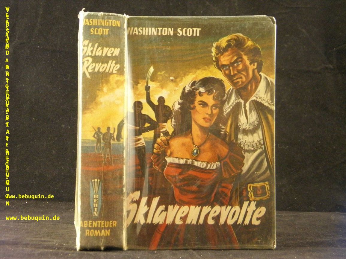 SCOTT, Washington: Sklavenrevolte. Abenteuer-Roman. Menden (Bewin), ca 1957. 240 S. farb. ill. OPb mit Supronyl. gestempeltes Leihbuch. EA.