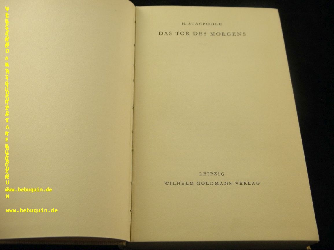 STACPOOLE, H.: Das Tor des Morgens D.v. Ravi Ravendro. Leipzig (Goldmann), ca 1935. 269 (3) S. ill. OLn. Ex libris auf Innendeckel, schönes Ex. dt. EA.