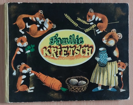 PETZSCH, Hans: Familie Krietsch. Eine Hamster-Lebensgeschichte für Kinder. Leipzig (Arnold), (1959). Quer 4°. 20 S. mit farb. Bildern von Ingeborg Friebel. farb. ill. OHLn. WaV. Mück 1348.