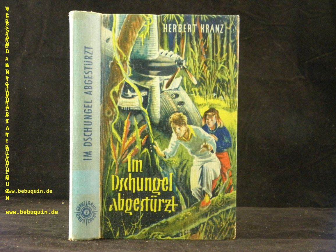 KRANZ, Herbert: Im Dschungel abgestürzt. Abenteuer in den Urwäldern Brasiliens. 4. Aufl. Freiburg (Herder), 1955. 228 S. mit gestalteten Vorsätzen. farb. ill. OPb. gestempeltes Leihbuch.