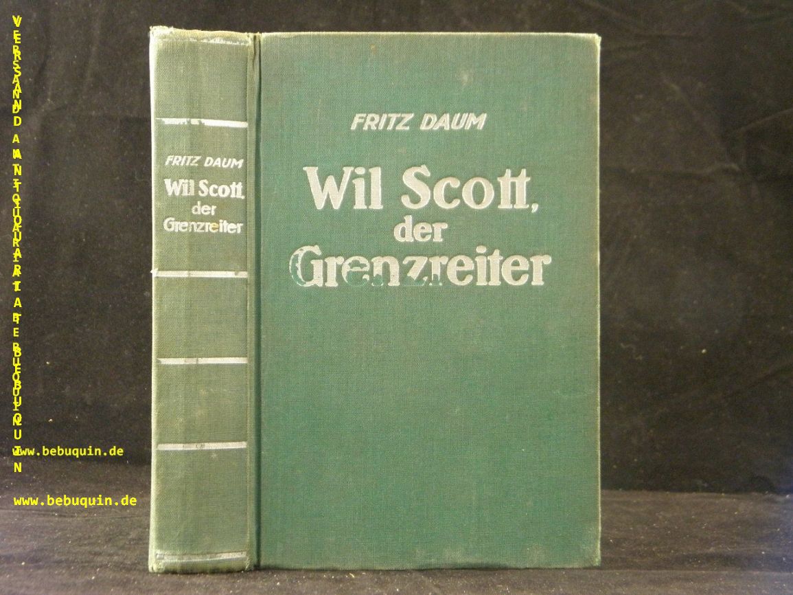 DAUM, Fritz: Will Scott, der Grenzreiter. Dresden (Münchmeyer), 1937. 297 (7) S. OLn mit Silberprägung. gestempeltes Leihbuch. = Münchmeyers Abenteuerromane. EA. Schegk / Wimmer S3.