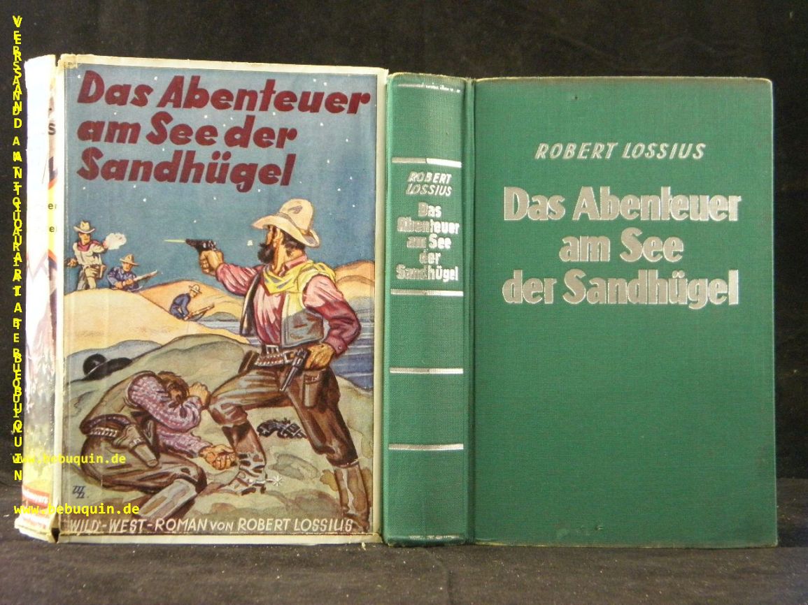 LOSSIUS, Robert: Das Abenteuer am See der Sandhügel. Dresden (Seyfert), ca 1935. 276 (4) S. OLn mit Silberprägung und OUmschl. Umschlagrücken teils lädiert, gestempeltes Leihbuch. = Münchmeyers Abenteuerromane. EA.