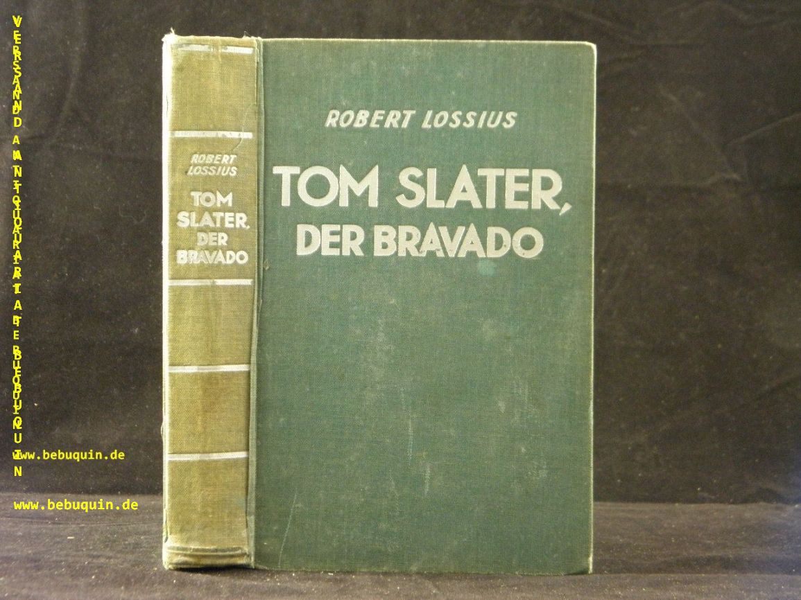 LOSSIUS, Robert: Tom Slatter, der Bravado. Wildwest-Roman. Dresden (Münchmeyer), ca 1935. 272 S. OLn mit Silberprägung. Rücken geblichen, Ecken leicht bestoßen. = Münchmeyers Abenteuerromane. EA.