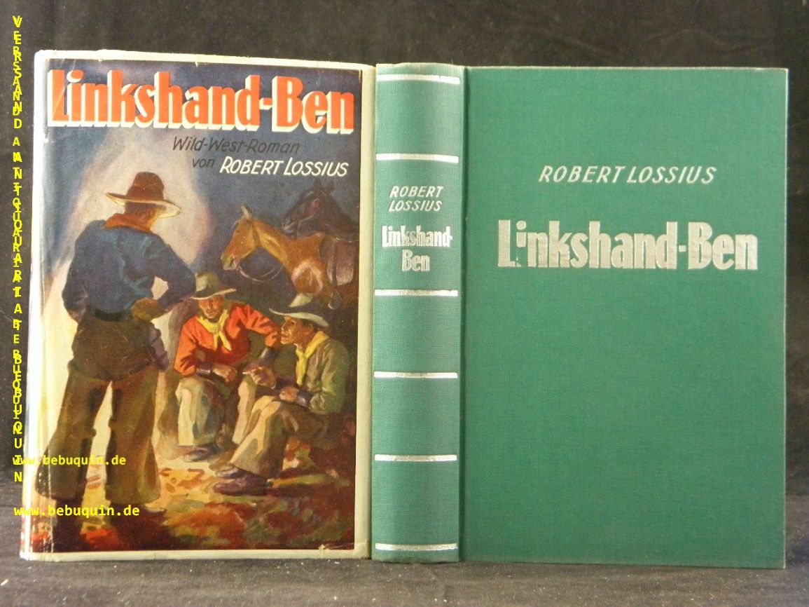 LOSSIUS, Robert: Linkshand-Ben. Wild-West-Roman. Dresden (Münchmeyer), ca 1935. 293 (3) S. OLn mit Silberprägung und OUmschl. Umschlag rückseitig unauffällig hinterlegt, schönes Ex. = Münchmeyers Abenteuerromane. EA.
