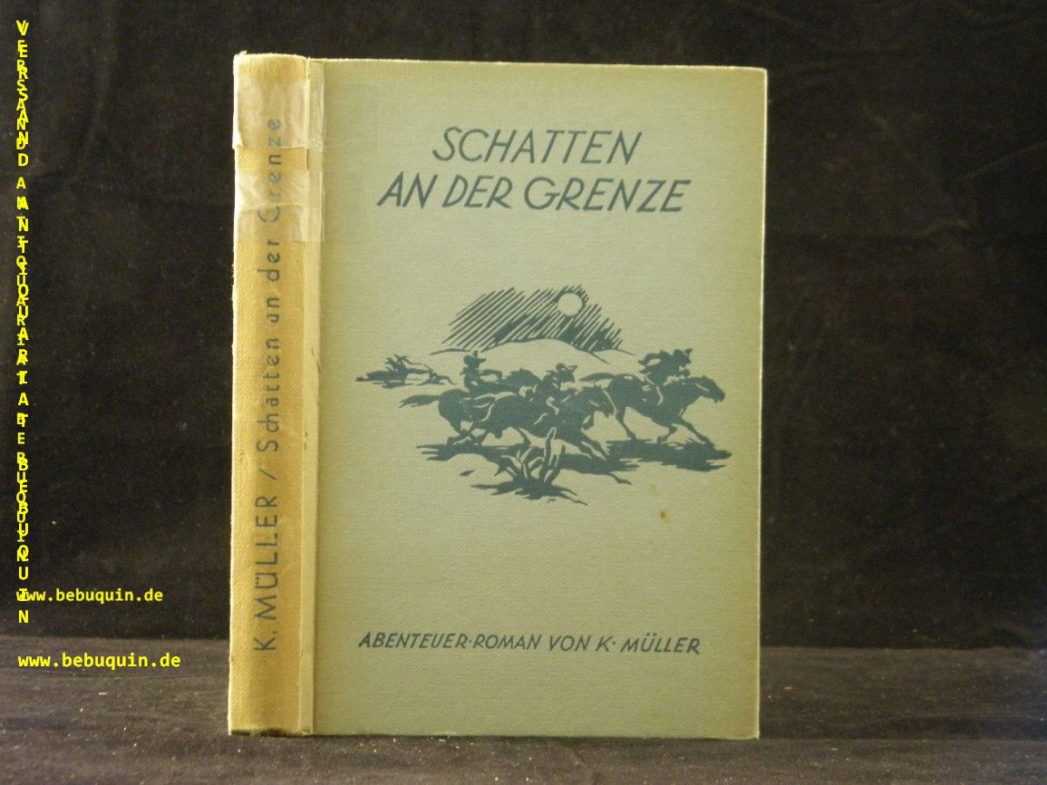 MÜLLER, K.: Schatten an der Grenze. Abenteuer-Roman. 4.– 8. Tsd. Leipzig (Lipsia), 1942. 200 S. ill. OPb. oberes Kap mit Tesa fixiert. EA.