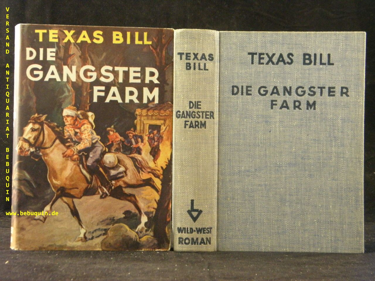 TEXAS BILL.– SCHUBERT, P.H.: Die Gangster-Farm. Wild-West-Roman. Leipzig (Lipsia), ca 1938. 288 S. OLn. mit OUmschl. feines Ex. seltene EA.
