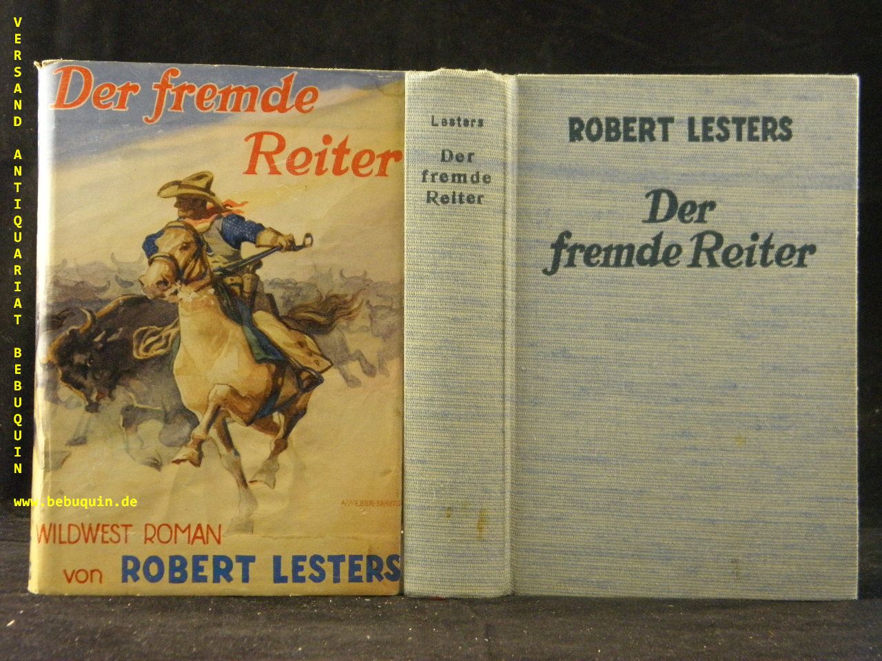 GREISER.– LESTERS, Robert: (d.i. Wolfgang Greiser) Der fremde Reiter. Wild-West-Roman. Leipzig (Lipsia), 1938. 280 S. OLn. mit OUmschl. Umschlagränder hinterlegt, feines Ex. EA.