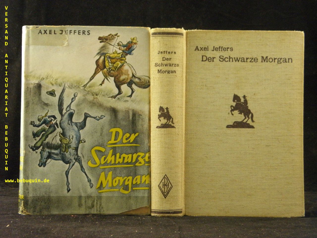 JEFFERS, Axel: Der Schwarze Morgan. Bremen (Burmester), ca 1938. 270 (2) S. OLn. mit OUmschl. Umschlagkanten hinterlegt, sonst feines Ex. = Burmester’s Abenteuer – Serie. EA.