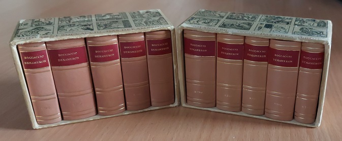 BOCCACCIO, Giovanni: Das Dekameron. 10 Bände. Leipzig (Andersen Nexö), 1972/73. 5,5 x 4 cm. je ca 350 S. hellbraunes OLdr in OSchuber. Schuber an den Kanten leicht berieben, sonst feine Erhaltung. numeriertes Ex. einer Gesamtauflage von 2000 Ex.