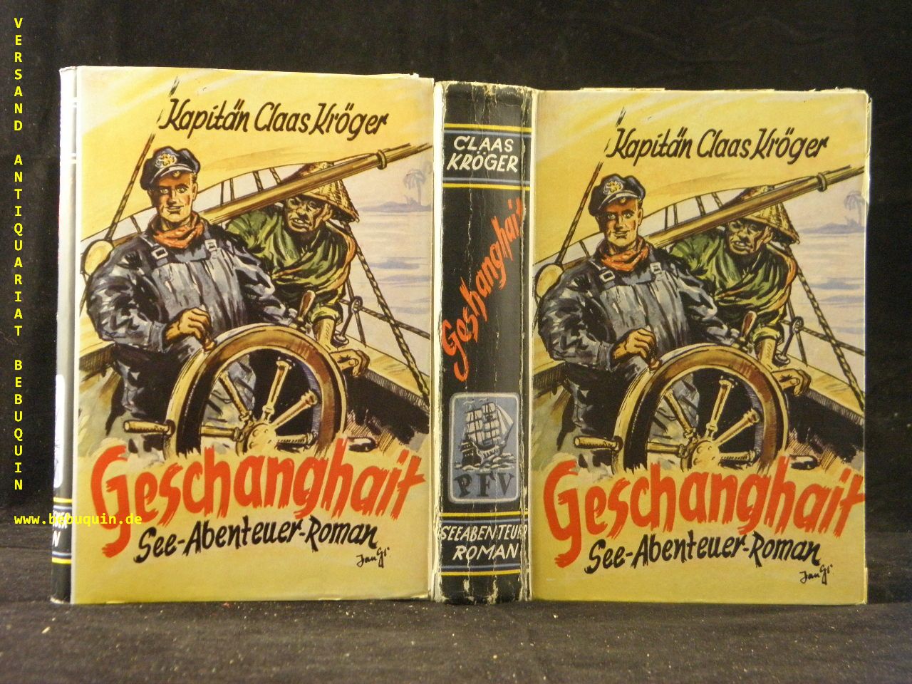 KAPITÄN KLAAS KRÖGER: Geshanghait. Seeabenteuer-Roman. Marl-Hüls (Feldmann), ca 1955. 269 S. farb. ill. OPb. mit OUmschl. gestempeltes Leihbuch. seltene EA.