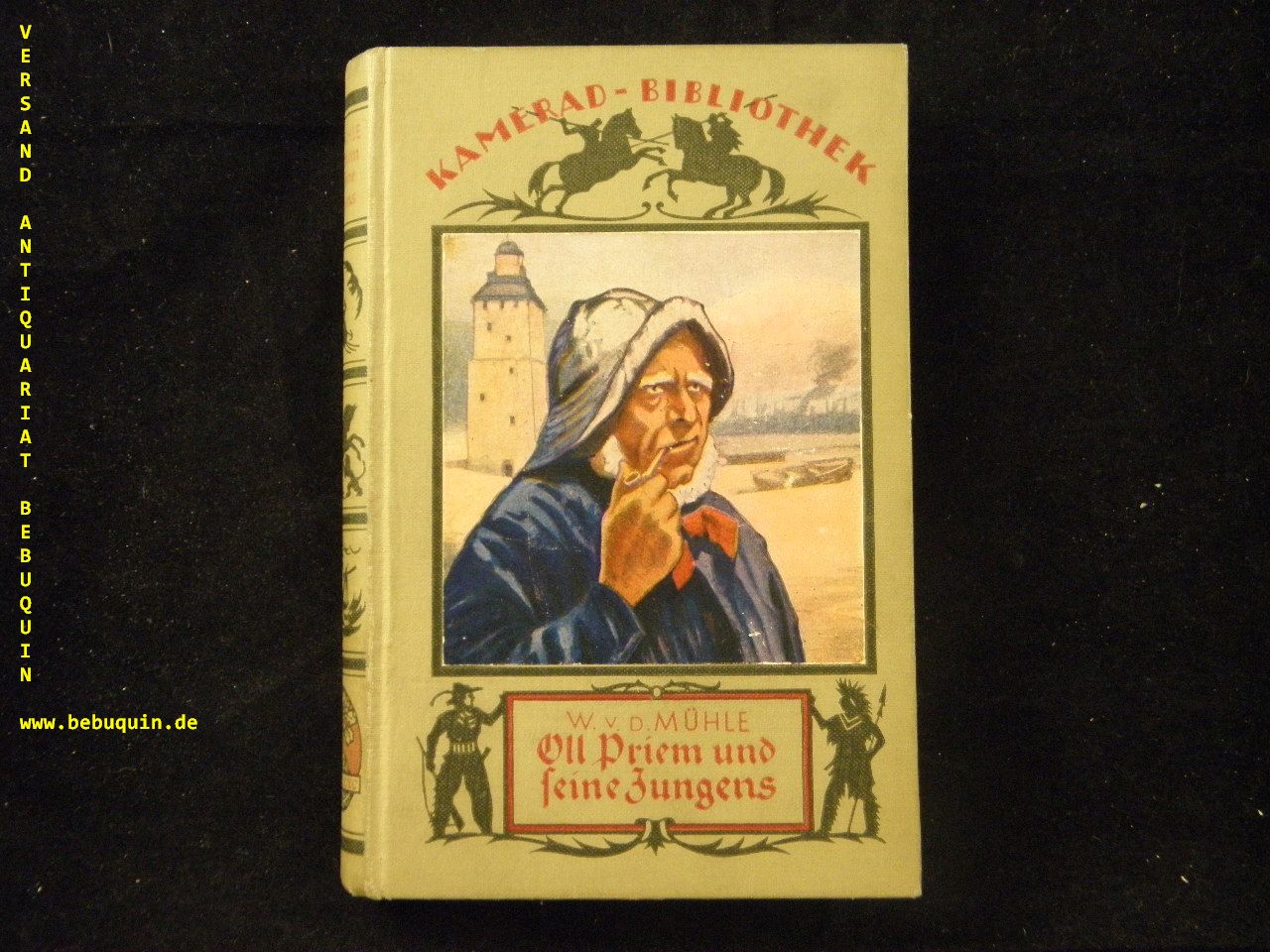 KAMERAD-BIBLIOTHEK. MÜHLE, Wilhelm v.d.: (d.i. Sophie Kloerss) Oll Priem und seine Jungens. 17. Aufl. Stuttgart (Union), 1926. kl. 8°. 292 S. mit zahlr. Abb. + Werbeanhang. ill. OLn. mit mont. Farbbild. feines Ex. = Bd. 24. Klotz 3472/13.