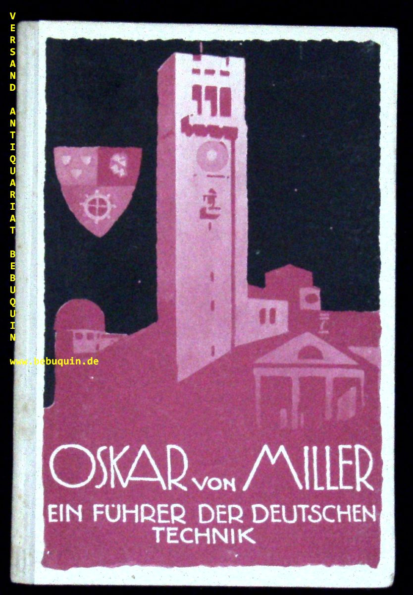 TECHNIK.– KALKSCHMIDT, Eugen: Oskar von Miller. Ein Führer deutscher Technik. 8. Aufl. Stuttgart (Dieck & Co), 1924. 85 S. mit 63 Textabb. farb. ill. OHLn von Ludwig Hohlwein.