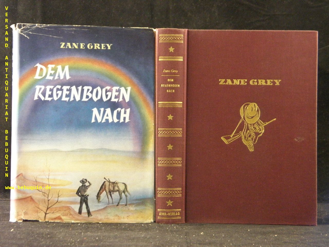 GREY, Zane: Dem Regenbogen nach. D.v. Hansheinz Werner. München (Awa), (1953). 256 (4) S. ill. OLn. mit OUmschl. schönes Ex. 1. Aufl. dieser Ausgabe. Schegk / Wimmer S13.