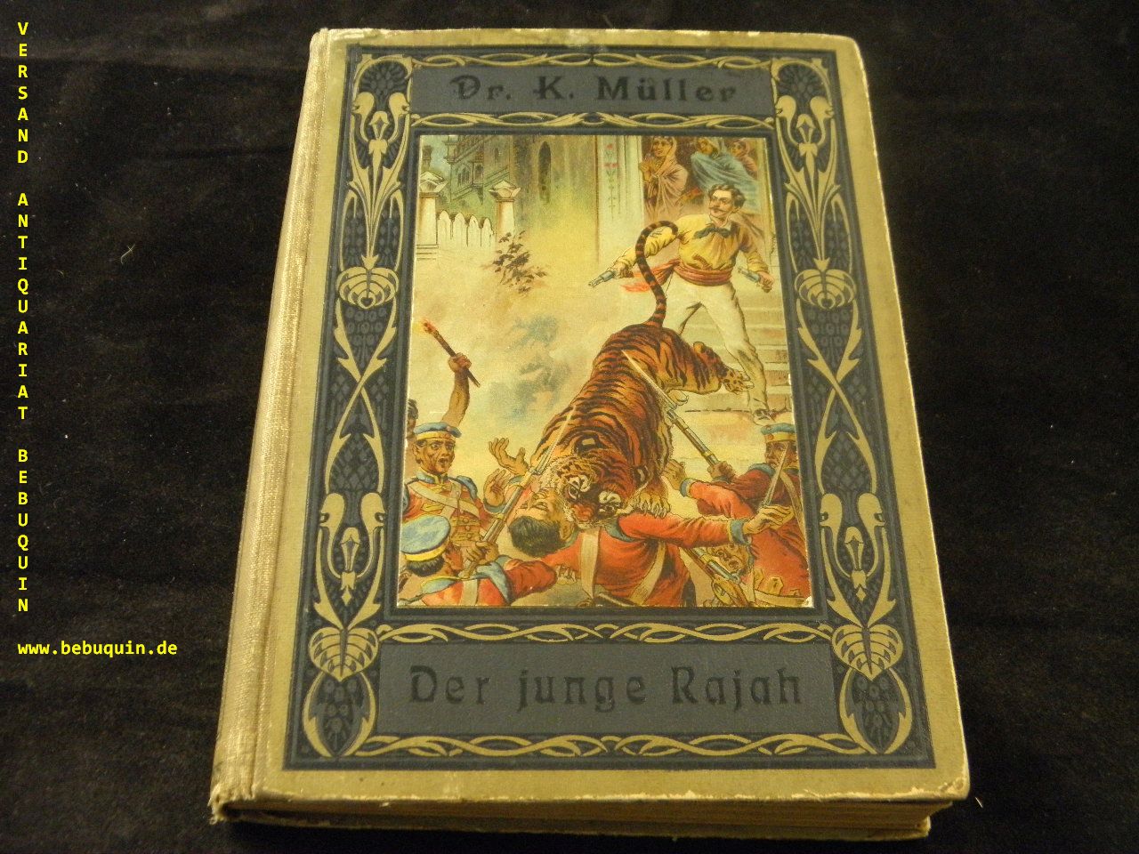 MÜLLER, Karl: Der junge Rajah. Lebensbilder und Abenteuer aus Indien. Nach geschichtlichen Ereignissen für die reifere Jugend. 4. Aufl. Reutlingen (Enßlin & Laiblin), ca 1910. 160 S. mit 3 Farbendruckbildern. ill. OHLn. mit mont. Farbbild. Kanten leicht berieben, Gelenke etwas gelockert, schönes Ex. Klotz 4873/91.