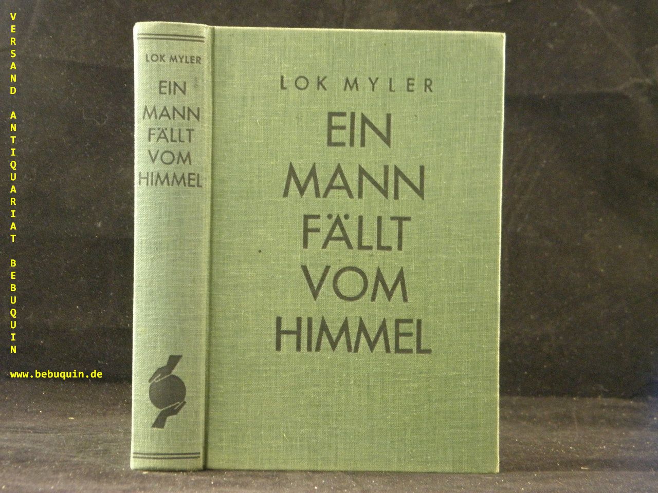 SUN KOH.– MYLER, Lok: (d.i. Paul Alfred Müller) Ein Mann fällt vom Himmel. Eine unwahrscheinliche Geschichte. Leipzig (Bergmann), 1937. 244 S. OLn. NaV. = Sun Koh, Bd. 1. EA. Schegk / Wimmer S1.