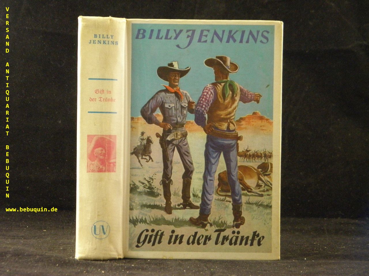 BILLY JENKINS.– ROBB, Alex: Gift in der Tränke. Sinzig (Uta), 1954. 255 S. farb. ill. OPb. gestempeltes Leihbuch. = Billy Jenkins Wild – West – Erzählungen, Bd. 102. 1. Aufl. dieser Ausgabe.