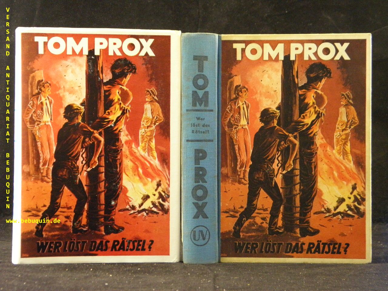 TOM PROX.– DALTON, Frank: Wer löst das Rätsel? Ein spannendes Erlebnis des Westmannes Tom Prox. Sinzig (Uta), 1951. 265 (6) S. farb. ill. OHLn. mit OUmschl. gutes Ex. = Tom Prox abenteuerliche Erlebnisse, Bd. 5. 1. Aufl. dieser Ausgabe.