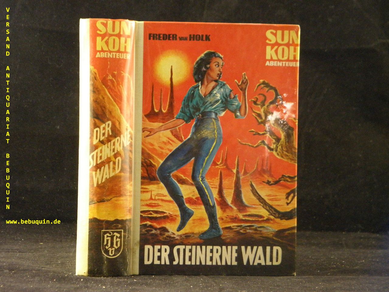 SUN KOH.– HOLK, Freder van: Der steinerne Wald. Abenteuer-Roman. Münster (Borgsmüller), ca 1960. 255 (1) S. farb. ill. OHLn. gestempeltes Leihbuch. 1. Aufl. dieser Ausgabe.