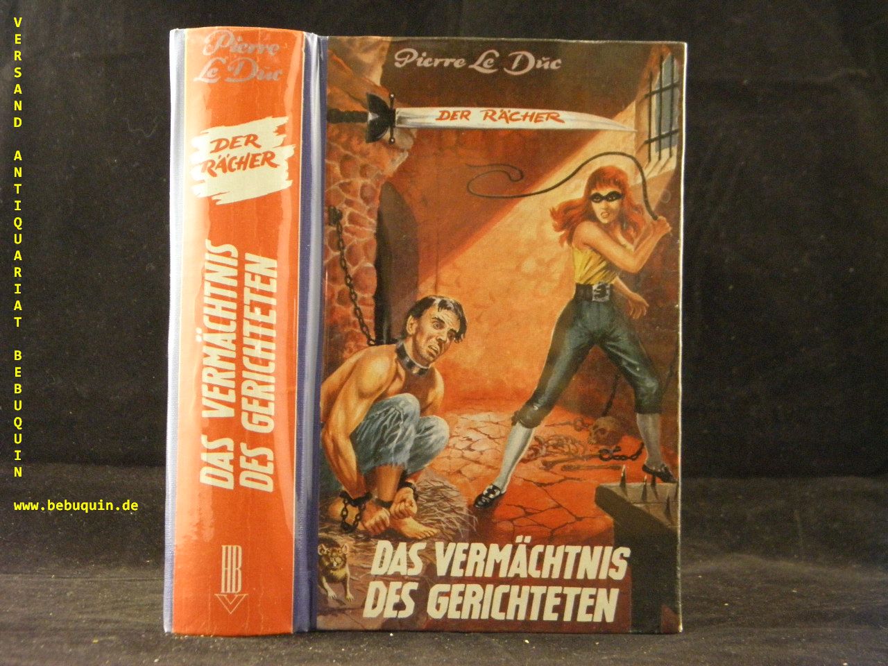 PIERRE LE DUC DER RÄCHER.– MOTTE, Henri de la: Das Vermächtnis des Gerichteten. Eschwege (Bethke), 1960. 270 S. farb. ill. OHLn. schönes Ex. = Bd. 5. EA. Indiziertes Leihbuch 1961!