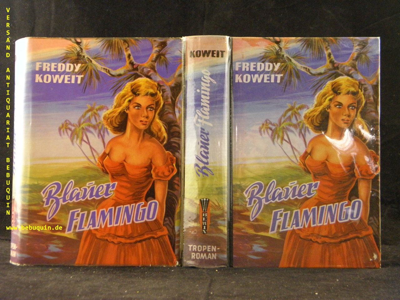 KOWEIT, Freddy: Blauer Flamingo. Tropenroman. Menden (Bewin), 1957. 255 S. farb. ill. OHLn. mit OUmschl. Umschlag etwas lädiert, sonst schönes Ex. 1. Aufl. dieser Ausgabe.