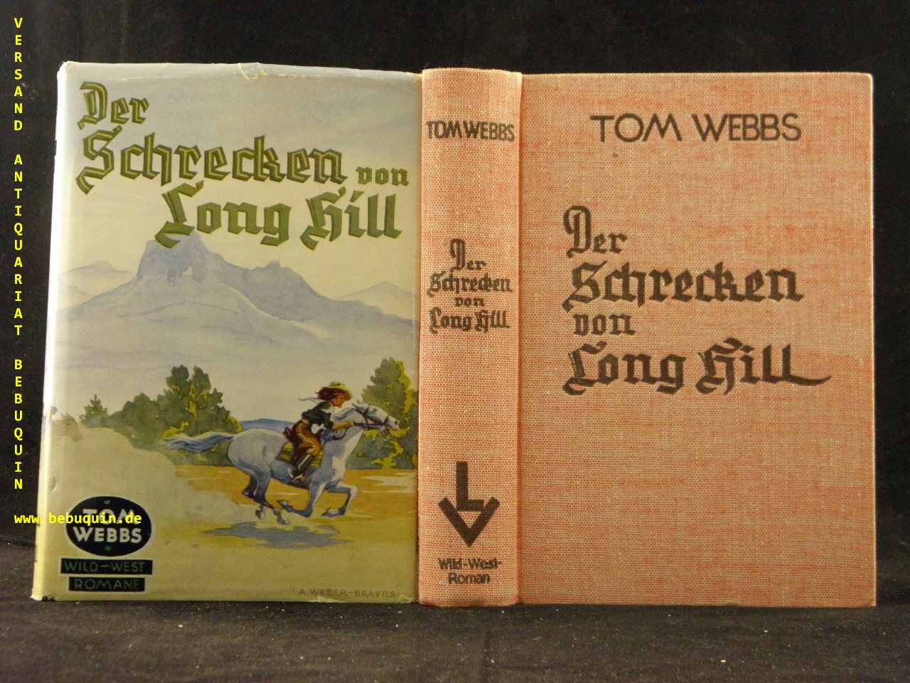 TOM WEBBS.– STORR, Robert: Der Schrecken von Long Hill. Wild-West-Roman. Leipzig (Lipsia), 1939. 285 (3) S. OLn mit OUmschl. sehr feines Ex. seltene EA.
