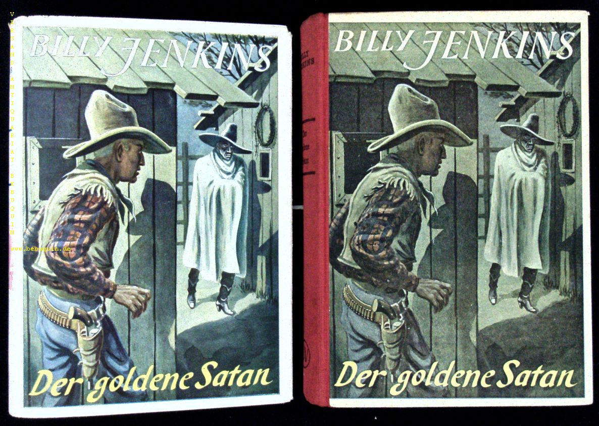 BILLY JENKINS.– RANDALL, Rolf: (d.i. Joachim Rennau) Der goldene Satan. Essen (Uta), 1950. 266 (6) S. farb. ill. OHLn. mit OUmschl. Umschlag am Rand gering lädiert, NaV, sonst schönes Ex. = Billy Jenkins Wild – West – Erzählungen, Bd. 7. 1. Aufl. dieser Ausgabe.