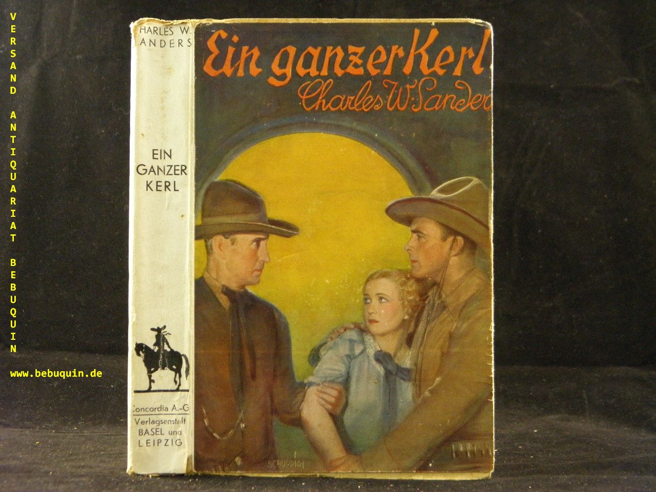 SANDER, Charles W.: Ein ganzer Kerl. D.v. Theo Hansen. Leipzig (Concordia), ca 1938. 264 S. farb. ill. OKart von Schuppich. kaum gelockert. Sehr seltene EA mit der beeindruckenden Umschlagillustration.