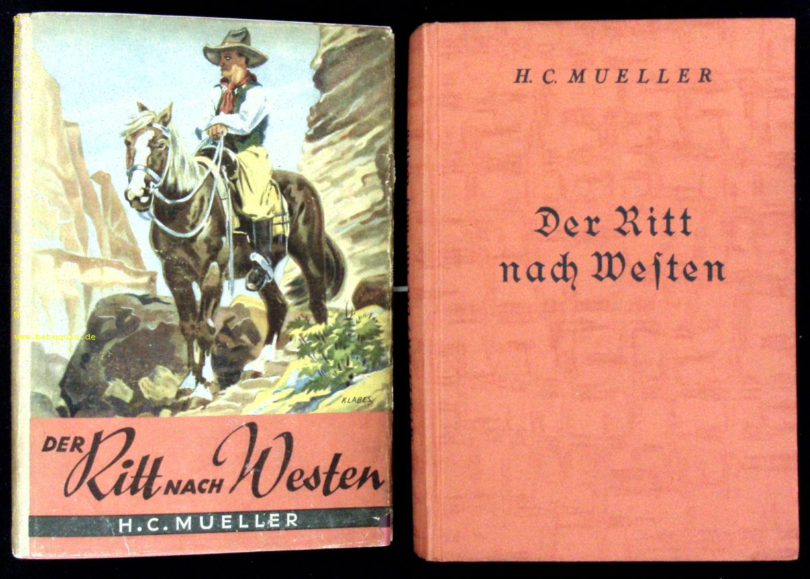 MÜLLER, H.C.: Der Ritt nach Westen. Abenteuer-Roman. Leipzig (Wehnert), 1942. 256 S. OPb. mit OUMschl. Umschlagrücken gebräunt, NaV. EA.