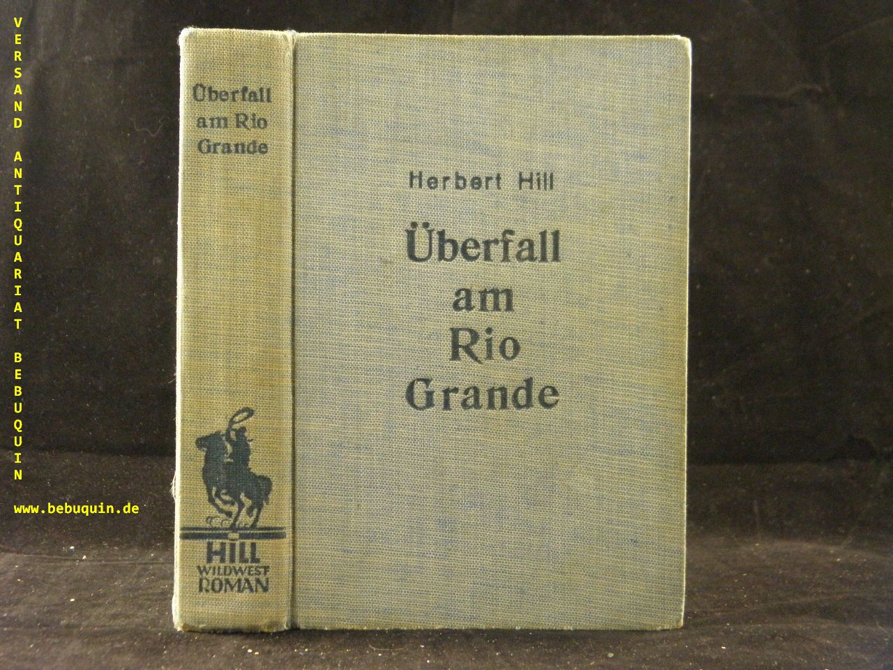 HILL, Herbert: Überfall im Rio Grande. Wild-West-Roman. Leipzig (Lipsia), 1937. 285 (3) S. OLn. vorderes Gelenk gelockert, Papier wenig fingerspurig. seltene EA.