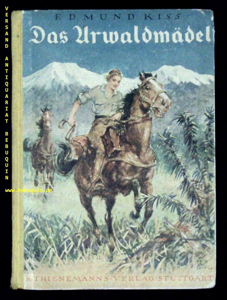 BORSIG.– KISS, Edmund: Das Urwaldmädel. Stuttgart (Thienemann), 1933. 94 S. mit 4 farb. Bildern von Richard Sapper. farb. ill. OHLn. leicht bestaubt. EA. Klotz 3407/8. Mit einer eigenhändigen auf 1933 datierten und voll signierten Widmung des Ernst von Borsig. Borsig war ein deutscher Gutsherr, Widerstandskämpfer gegen den Nationalsozialismus und Mitglied der Widerstandsgruppe/Programmgruppe Kreisauer Kreis.